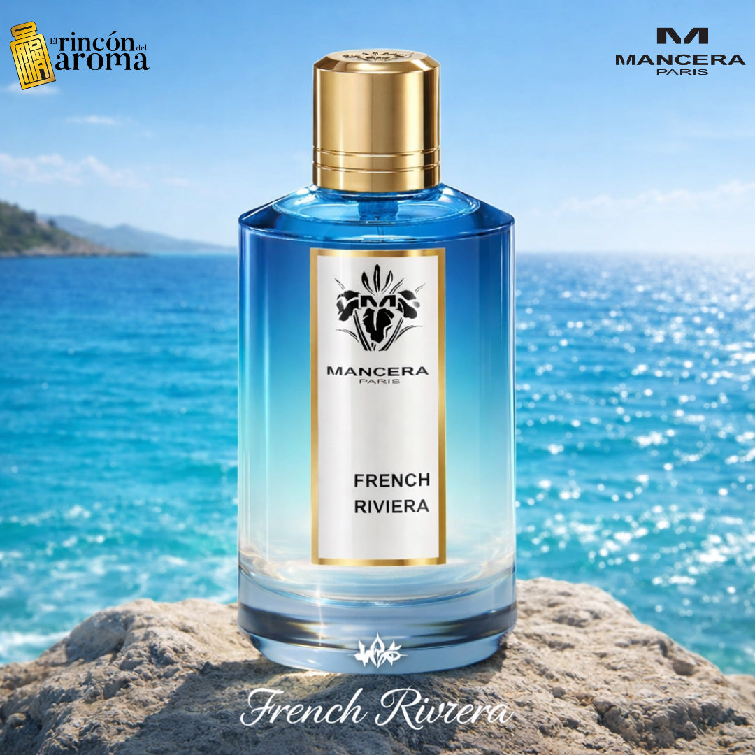 Mancera French Riviera es una fragancia fresca y luminosa que captura la esencia del verano mediterráneo. Imagina una brisa suave sobre el mar azul, con notas cítricas vibrantes de limón, mandarina y naranja combinadas con jengibre y un toque marino salado. En el corazón florecen aromas elegantes como la flor de tiaré, mimosa y ylang-ylang, aportando una calidez floral refinada. La base queda en una estela sedosa y sofisticada de almizcle blanco, ámbar y maderas claras, que equilibra perfectamente la frescura inicial con una persistencia elegante sobre la piel.