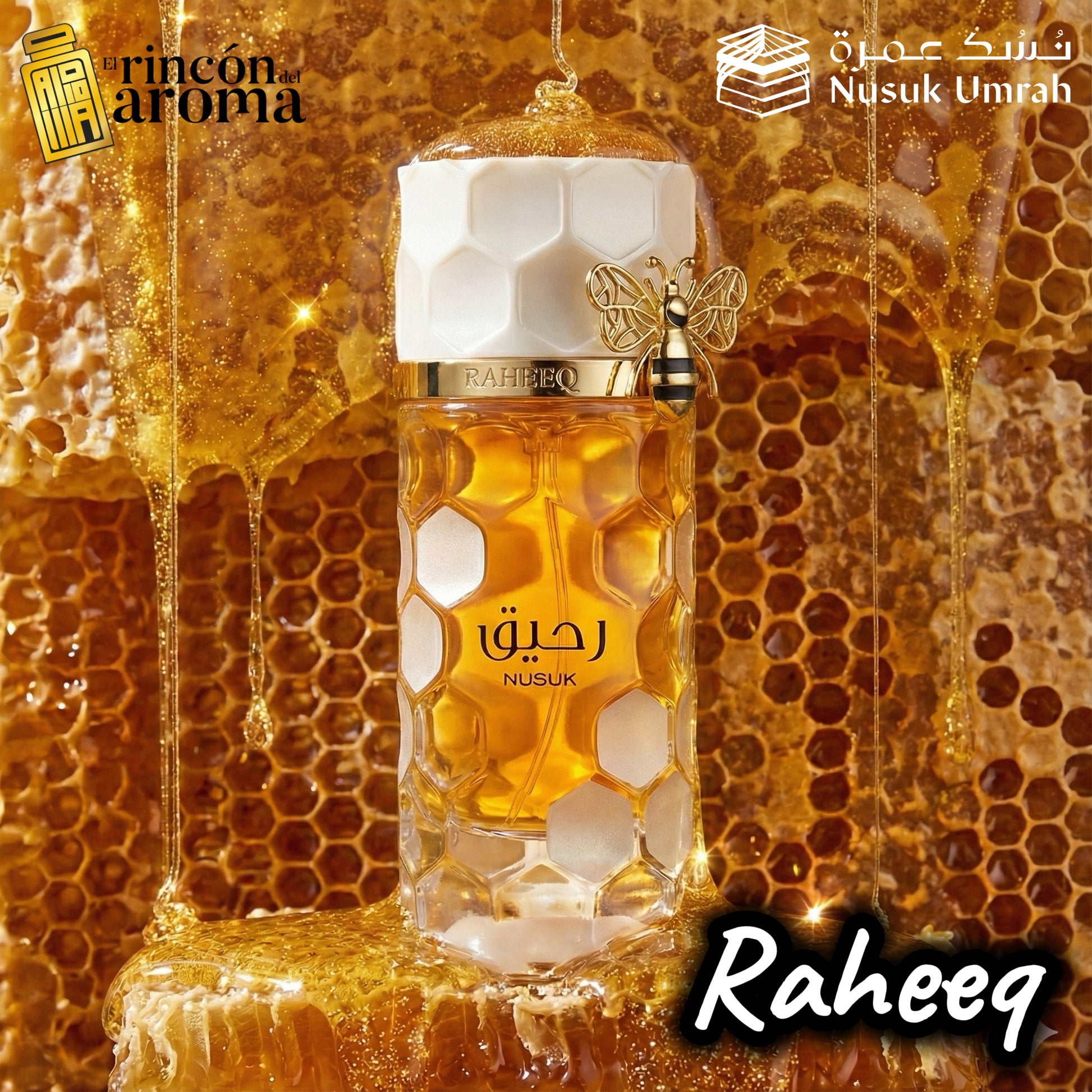 En conjunto, “Raheeq” ofrece un perfil que combina dulzura, calidez y un toque exótico, ideal para quienes disfrutan fragancias que evolucionan desde lo fresco-frutal hasta lo gourmand-azucarado y lo oriental-maderoso.